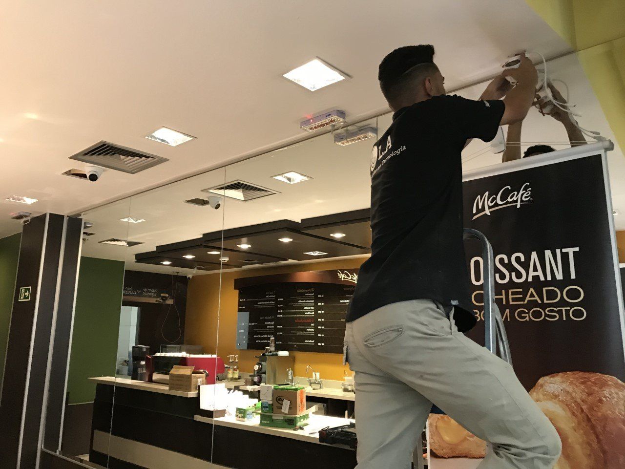 alarme de incêndio, controle de acesso e fibra óptica. Fazendo um conjunto com soluções de Redes de computadores para complementar a necessidade das soluções existentes na implementação da seguranca eletrônica.